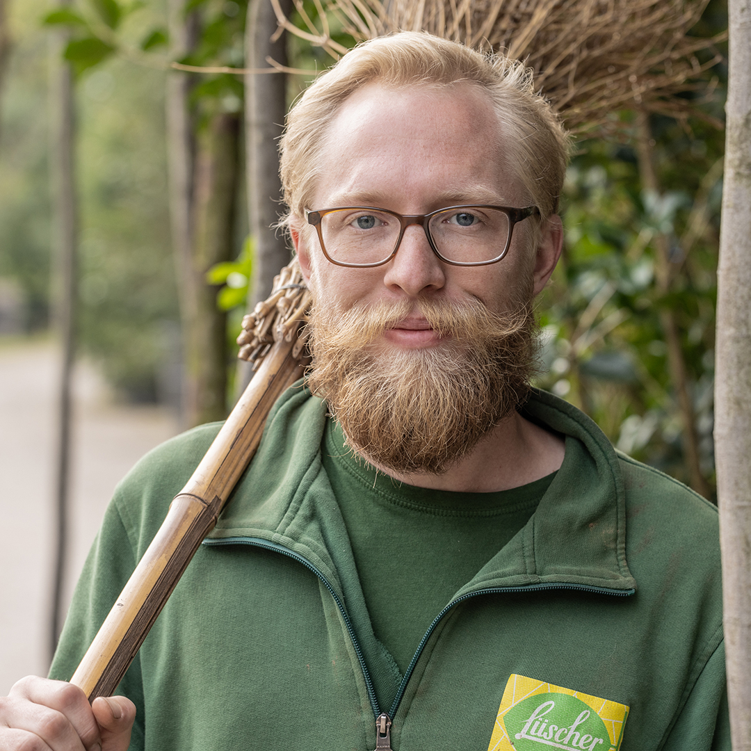 JONAS THOMMEN studierte zuerst Landschaftsarchitektur und Kunstgeschichte, merkte dann jedoch, dass er lieber im Freien arbeiten würde. Etwas aus dem Boden stampfen – das wollte ich! Er ist 31 Jahre alt und kommt aus Zürich. Nach einem Praktikum 2019/2020 bei der Firma LÜSCHER, das ihm sehr gut gefiel, entschied er sich für eine Lehre als Landschaftsgärtner EFZ